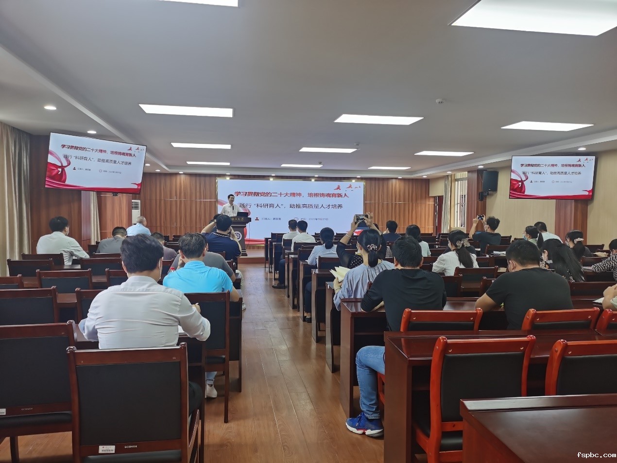 2022年11月29日,我院开展“学习贯彻党的二十大精神、培根铸魂育新人”主题师德巡讲活动。这次活动以报告会的形式进行,会议邀请了聂双喜老师作主题报告,报告题目为“践行科研育人,助推高质量人才培养”。学院全体教师参加了活动。